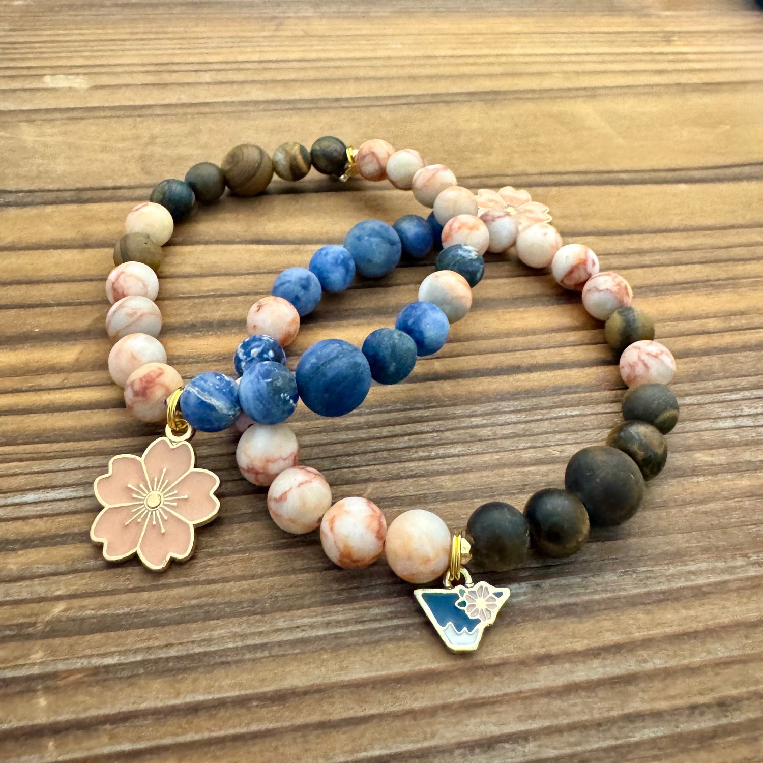 Crowned in snow and shrouded in mist & cherry blossoms, Mt. Fuji rises - silent, sacred, still. This bracelet carries the spirit of that quiet strength, balancing earth and sky. For the passionate seekers, the ones who climb within.